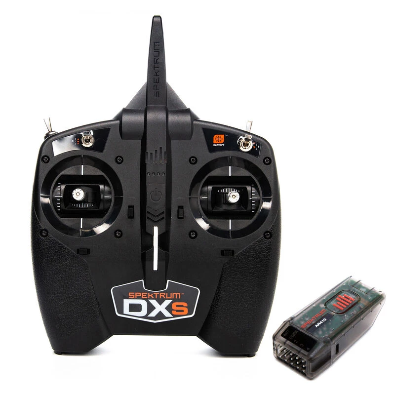 - Spektrum™ DXS system includes transmitter plus full-range, 4-channel AR410 DSMX®/DSM2® compatible air receiver